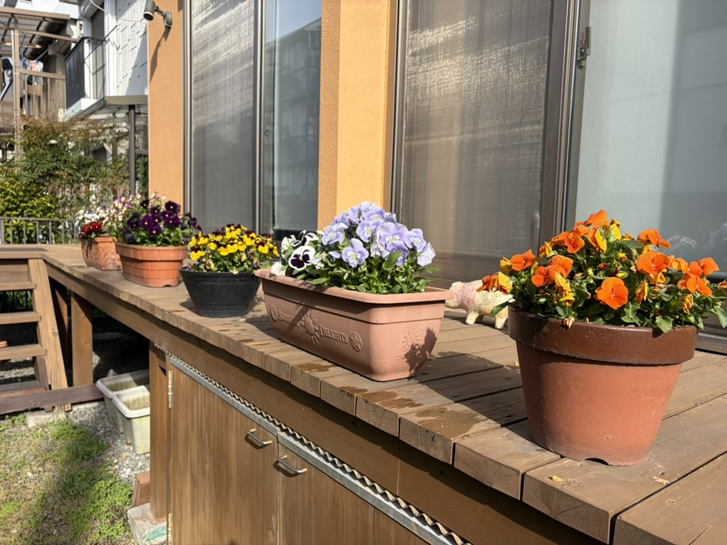 ビオラとパンジーももりもり花が咲いています。