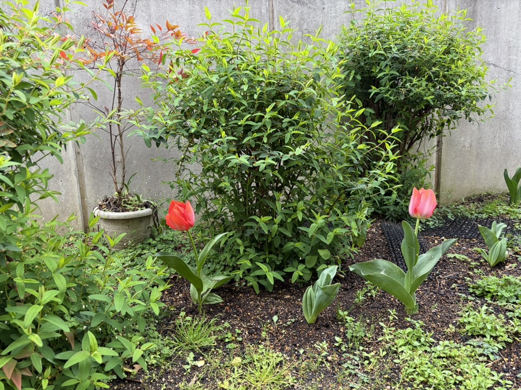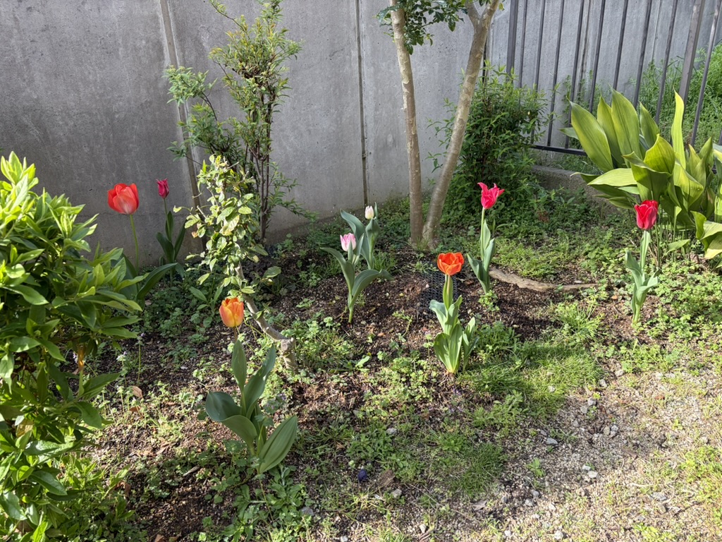 12月に植えたチューリップの球根、次々咲いています。