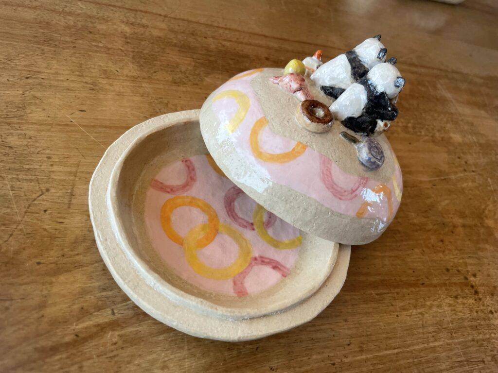 2026.04.15 🏺陶芸作品 双子パンダとスイーツの小物入れ hanabishien 下絵付けと上絵付け(ポーセリンアート)で彩色しました。双子のパンダがスイーツに囲まれている幸せな光景を表現しました。楽しい雰囲気が伝わるといいなと思います。 ABOUT ME 花菱縁陶芸作家Instagram自宅をアトリエに陶芸制作しています。大阪市在住。