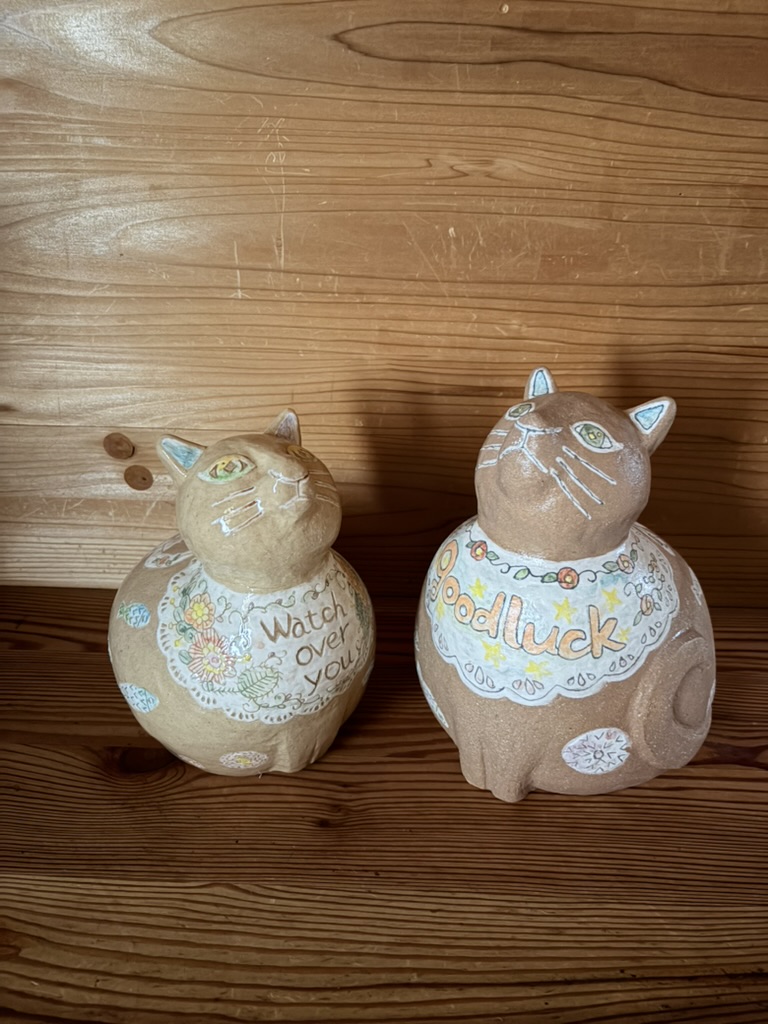 ひとつは 「Watch over you」。あなたを見守ってくれるねこ。もうひとつは 「Good luck」。幸運を運んできてくれそうなねこです。